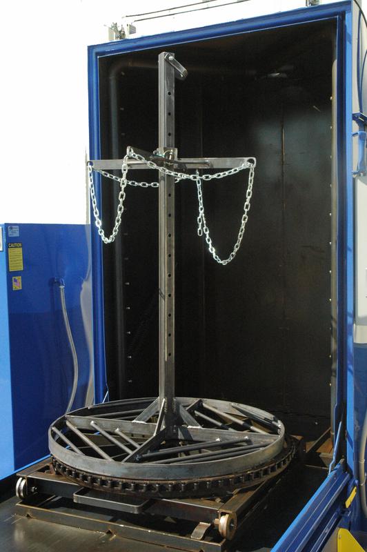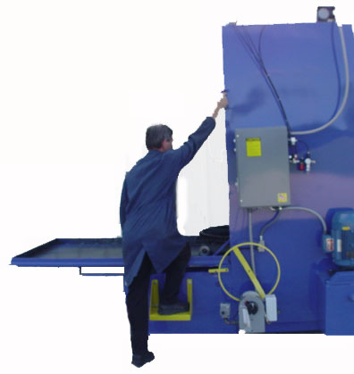 Its large 36”x 60” working capacity and 2000 lb weight capacity will accommodate a host of large truck and industrial applications. Standard equipment on the Intimidator features pneumatic door clamps, built in hot tank, manual rollout wheel, and a powerful 15 hp pump motor flowing 225 gallons per minute of hot cleaning solutions for fast and efficient cleaning.