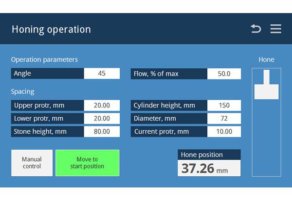 Thanks to the touch screen control system, which is located in front of the operator, it is possible to enter the work parameters to be calculated by the integrated software, thus speeding up the operation and increasing the honing head's rotation speed.