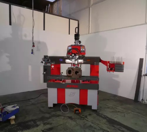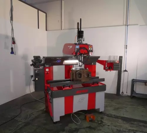 Machine designed on the working principle of the double air-float patented centering system, with a built-in motor spindle delivering massive torque, a very high rigidity machining head and frame, being able to carry very heavy cylinder heads.