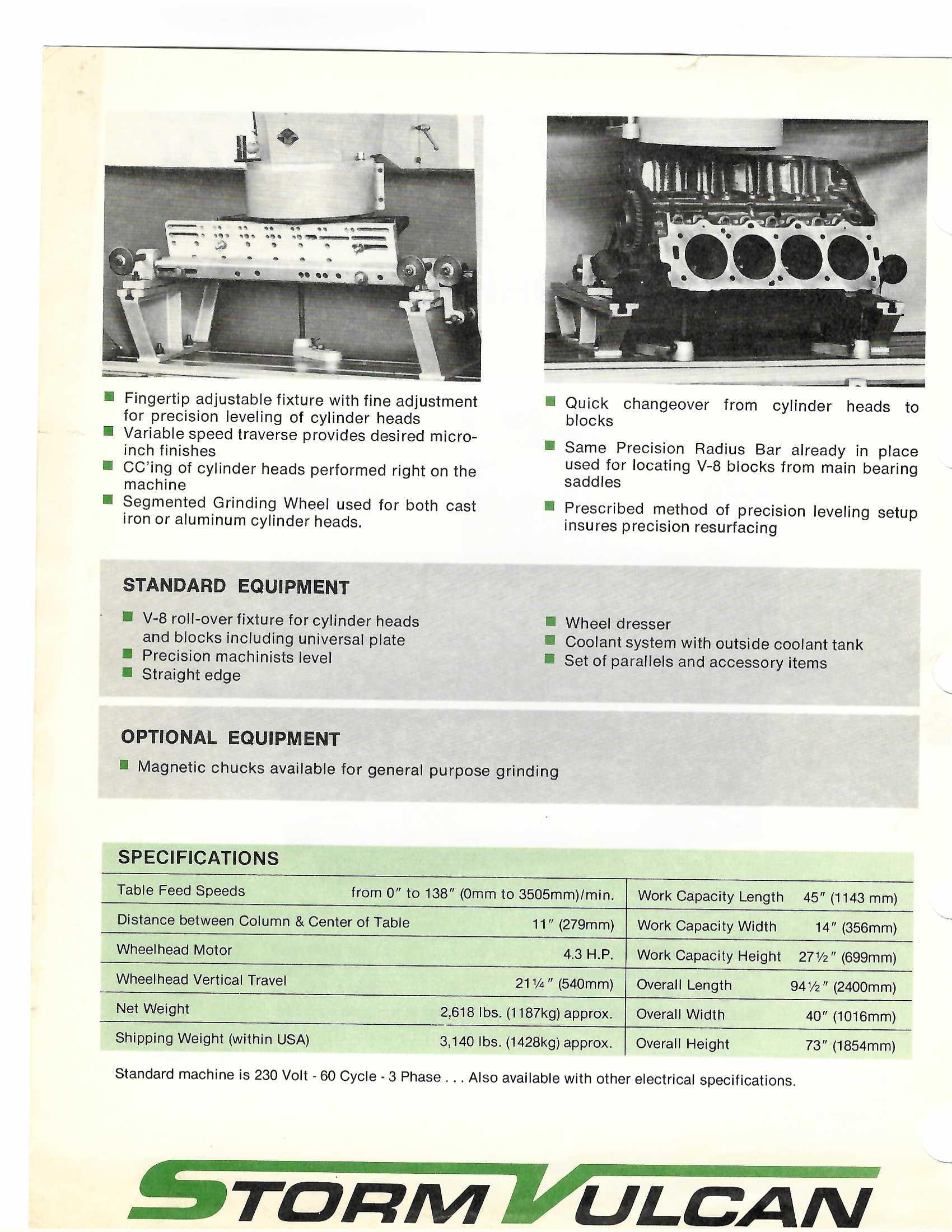 Wheelhead Motor: 4.3 H.P